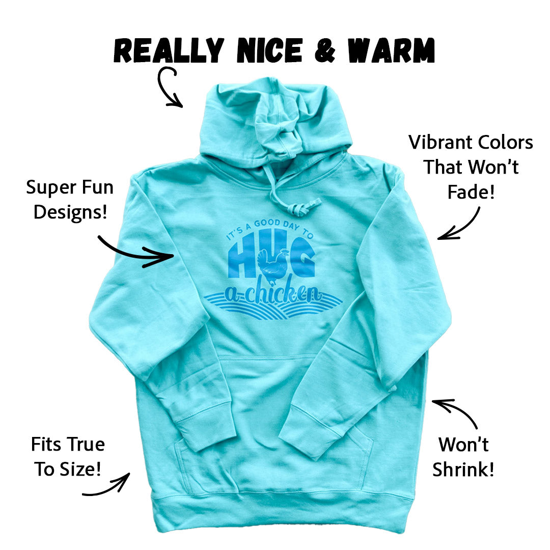 Lots of hoodies are too heavy and bulky. These are the perfect weight that will still keep you toasty warm when out at the coop or around town.