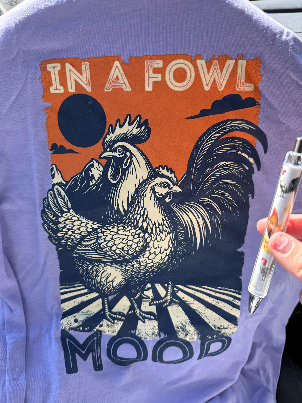 I can’t wait to wear my fall-themed chicken shirt. My chicken friends will love it too!